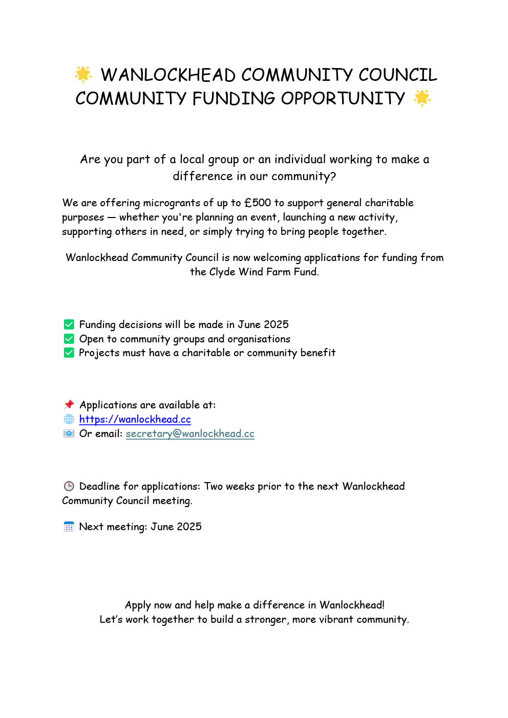 Wanlockhead Community Council's (WCC)'s aim is to ensure applications received achieve the grant applied for. WCC are bound by strict rules set by our funding partners. Failure to apply the rules set by our funding partners could result in removal of that funding stream altogether. Therefore, to ensure rules are understood and followed please follow the link below after you have read the relevant guidance/factsheet.